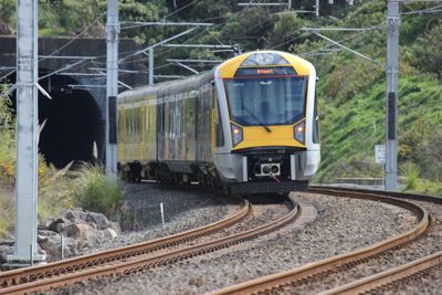 AM class EMUs wrapped with artwork roaming the Auckland rail network