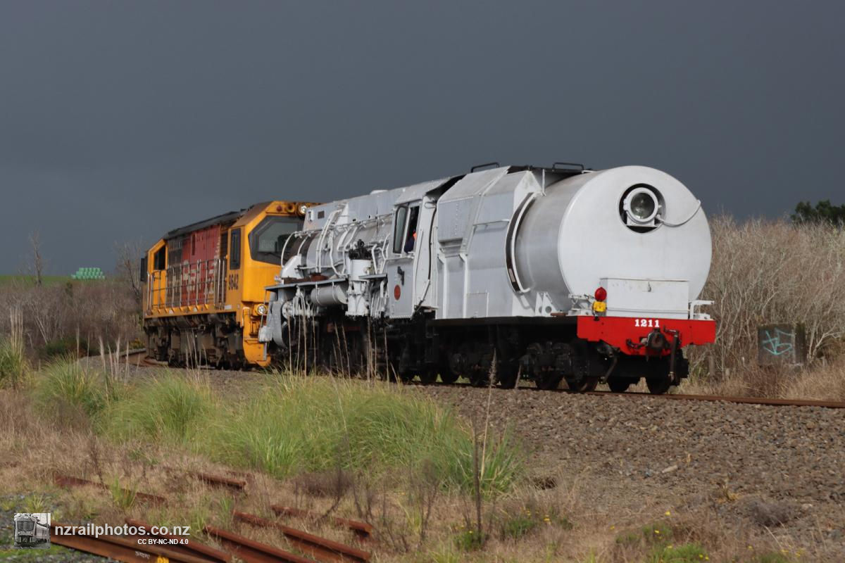 J 1211 on the move from Glenbrook to Plimmerton, seen through Franklin
