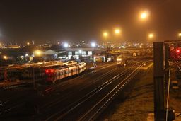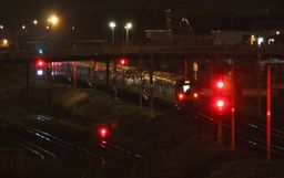 Westfield yard late at night, including a long EMU test train