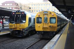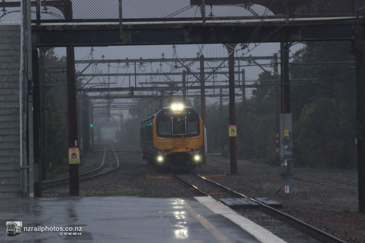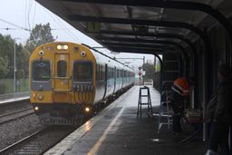 Trains in horizontal rain in Wellington