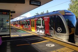 AM class EMUs wrapped with artwork roaming the Auckland rail network